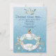 Cette invitation féerique et enchanteresse présente un arrière - plan de style dégradé de parties scintillant bleue. Un joli chariot citrouille Cendrillon aux accents de parties scintillant dorée est imprimé en bas avec une couronne princesse imprimée en haut.