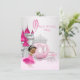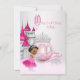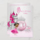 Invitation à une fête d'anniversaire Cendrillon avec un carrosse de princesse diamant rose et argent et un château en arrière-plan avec une adorable petite fille afro-américaine portant une jolie robe rose avec un diadème en diamant et des perles. Cette belle invitation d'anniversaire de princesse une fois sur une fois pour une fille ethnique est facilement personnalisable pour votre événement en ajoutant simplement vos détails dans le style de police et la couleur, et la formulation de votre choix. Il s'agit d'un design imprimé sans véritable paillettes, diamants, perles, etc.