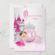 Cendrillon invitation fête d'anniversaire avec chandail de princesse en diamant rose et argent et arrière - plan de château avec adorable petite fille brune portant une jolie robe rose avec tiare en diamant et perles. Ces belles filles n'importe quel nombre Cinderella rose et argent une fois sur une invitation de fête d'anniversaire de princesse temps est facilement customisé pour votre événement en ajoutant simplement vos détails dans le style et la couleur de police, et le libellé de votre choix. Il s'agit d'un dessin imprimé sans parties scintillant réelle, diamants, perles, etc.