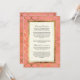 Ce fond aquarellé peint à la main passe d'un rose vif à une teinte corail chaud presque orange de manière subtile et élégante, dans un lavis aquarellé peint à la main. Un cercle géométrique, un motif classique Art déco à coquilles est rendu dans un faux foil doré et un aspect superposé qui est conçu graphiquement pour tromper l'œil. Vos directions de conduite et réservations d'hôtel sont personnalisées à l'aide des champs de modèle. Si vous avez besoin d'aide, envoyez-nous simplement un message, nous serons ravis de vous aider à ajuster les choses une fois que vous aurez toutes vos informations dans le formulaire. REMARQUE : il s'agit d'une conception imprimée à plat, il n'y a pas de véritable paillettes ou encre métallique dorée utilisée.