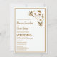 Invitation vos amis et proches avec ce faire-part de mariage floral en or détaillé qui comprend à la fois la cérémonie et les lieux de réception pour les couples qui choisissent d'échanger leurs voeux dans un endroit et de célébrer leur nouveau statut dans un autre, ce qui vous aide à planifier votre journée avec moins de tracas, de complications et de dépenses.