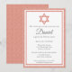 Marquez la joyeuse occasion de la Brit Milah de votre fils avec notre invitation classique pour la cérémonie de nomination de bébé juif ! Ce design élégant, baigné dans une couleur orange terre cuite tendance, donne le ton parfait pour la cérémonie traditionnelle. Ornée d'une étoile de David, cette invitation mélange avec élégance tradition et style. Personnalisez les détails pour rendre cette invitation unique et invitez vos amis et votre famille à être témoins et à bénir votre fils en ce jour spécial. Commandez maintenant et préparez le terrain pour une célébration de Brit Milah mémorable et pleine de sens !