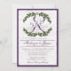 Un chevreuil à l'apparence esquissée dans une couronne de feuillage avec coeur et monogramme de faire-part de mariage dans le violet de prune. Inspirations rustiques de bouleau et de burlap pour votre événement mariage de bois ou de grange.