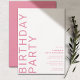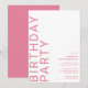 Invitations de fête d'anniversaire modernes et élégantes avec une couleur d'accent rose vif. Peut être modifié pour convenir à n'importe quel âge.