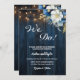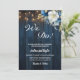 Une élégante invitation de mariage avec calligraphie élégante complétée par un magnifique bois bleu, des lampes à cordes de jardin et un bleu blanc floral avec parties scintillant d'or. Vous pouvez personnaliser cette carte avec les détails de votre Mariage.