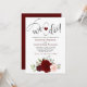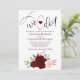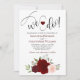 Cette belle faire-part de mariage boho chic présente un ensemble de roses peints à la main dans les tons rouge pourpre, bordeaux et rose roux, ainsi que des feuilles d'eucalyptus et de la verdure du jardin. Le titre est écrit en lettres de script et dit : We Do! avec un coeur de couleur bordeaux mignon entre les deux. Cet invitation est la combinaison parfaite du moderne et du intemporel - il est à la fois romantique et capricieux, ce qui le rend parfait pour une cérémonie formelle ou décontractée.