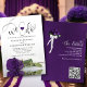 Cette belle faire-part de mariage est romantique, ludique et élégante. Il est doté d'un titre amusant avec un coeur mignon et un script moderne qui indique "We do" en haut, avec tous les détails ci-dessous. Au fond se trouve un magnifique rose royal à long tige de couleur violet allongé sur son côté réfléchissant ou reflété dans un bassin d'eau. Le dos est d'une couleur violet marbrée profonde avec un bouquet de roses violets attachés avec un arc en satin blanc. Il y a un titre "les détails" avec la place pour une note courte et un code QR personnalisable pour diriger vos invités vers un site Web avec plus d'informations et/ou vers RSVP en ligne. Classé, élégant et sophistiqué, cette invitation est la meilleure façon d'invitation vos amis et votre famille pour partager votre joie dans votre journée spéciale!