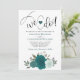 Cette belle faire-part de mariage boho chic présente un ensemble de roses peints à la main dans les tons turquoises, turquoise et aqua, ainsi que des feuilles d'eucalyptus et de la verdure du jardin. Le titre est écrit en lettres de script et dit : We Do! avec un coeur turquoise mignon entre les deux. Cet invitation est la combinaison parfaite du moderne et du intemporel - il est à la fois romantique et capricieux, ce qui le rend parfait pour une cérémonie formelle ou décontractée.