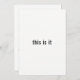 Cette simple invitation à dîner de répétition moderne en noir et blanc minimaliste comporte les mots simples "c'est ça" sur le devant et les informations de dîner de répétition sur le dos. Facile à customiser avec votre texte. D'autres objets avec ce design se trouvent dans ma suite de Mariage photo minimaliste It's Happening dans mon magasin Zazzle :