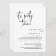 Annoncez votre bonheur toujours après dans le style avec notre carte d'invitation de mariage elopement design script moderne. Notre carte d'invitation Happily Ever After Party est idéale pour les couples qui ont décidé de s'enfuir et veulent organiser une fête pour célébrer leur union. Avec son design sophistiqué et ludique, cette invitation vous donnera le ton pour un événement inoubliable. La carte d'invitation présente un design minimaliste avec un schéma noir et blanc, ajoutant une touche d'élégance intemporelle à votre célébration.