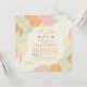 Une belle invitation qui présente des amas de fleurs de imaginaire en rose, orange vert et bleu sur un mince arrière - plan rayé. Parfait pour toute célébration ou occasion féminine.