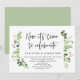 Moderne calligraphie noire, thème de verdure de jardin d'été, carte d'invitation de mariage intime (C'est maintenant le moment de célébrer). Elle est parfaite pour votre réception de mariage intime / fête de célébration après le mariage. Ajoutez vos détails dans la même police / lettrage noir.