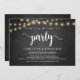 C'est maintenant temps de faire la fête, Faire-part / Invitation de mariage en fuite, sur un tableau noir de ferme rustique, conception de guirlandes lumineuses. C'est parfait pour votre réception de mariage et votre fête de célébration après le mariage. Ajoutez vos détails dans la même police / lettrage.