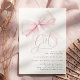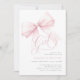 Bienvenue à votre petite fille dans le style avec notre invitation à Baby shower C’est une fille Rose Bow. Présentant un arc d'aquarelle rose vif délicat et une typographie de script élégante, ce design saisit un sentiment de beauté et de charme raffiné. La disposition épurée et minimaliste ajoute une touche de sophistication, tandis que le texte entièrement personnalisable vous permet d'adapter chaque détail pour créer une invitation de baby shower unique et mémorable.