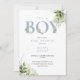Invitation C'est un garçon Dusty Blue Greenery QR Code Baby s
