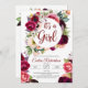 C'est une jeune fille rousse bordeaux et marron baby shower floral invitation dans le style boho, pour fille, facile personnalisée, Roses blush ©