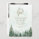 Cette invitation rustique et élégante de baby shower de forêt de pins aquarelles peut être personnalisée avec vos informations dans la typographie moderne et une photo spéciale au verso, avec votre code QR de registre et les détails de douche au verso. Conçu par Thisisnotme©