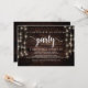 C'est après le dîner et la fête de mariage, Carte d'annonce / invitation de mariage en fuite, sur fond de bois de ferme rustique, décor de guirlandes lumineuses. C'est parfait pour votre réception de mariage et votre fête de célébration post-mariage. Ajoutez vos détails dans la même police / lettrage.
