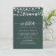 Ce feu à cordes vert nous faisons encore vow invitation de renouvellement est parfait pour une cérémonie de renouvellement de vow rustique et de célébration. Le design comprend de belles lampes à cordes peintes à la main dans un arrière - plan vert.