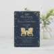 Conception d'étoiles dorées scintillantes et chaises de plage Adirondack, invitation de fête d'anniversaire dorée romantique en bleu marine et or. Invitation d'anniversaire de mariage 50 ans.