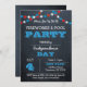 Invitation Chalboard rouge blanc et bleu feux d'artifice