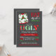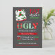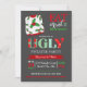 Invitation à une fête de pull moche. Effet tableau rouge, blanc, vert.
