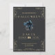 Cette invitation de la fête d'Halloween dégage un sentiment d'élégance étrange avec son arrière - plan noir et ses bordures de coin or sophistiquées et l'écriture. Le contraste entre le fond sombre et les accents dorés donne un ton mystérieux et luxueux, parfait pour une soirée d'Halloween. Au centre de l'invitation, une figure de Grim Reaper se profile, ajoutant une touche d'intrigue hantante. La Grande Faucheuse, symbole classique d'Halloween et du surnaturel, ajoute un élément de fraîcheur et de fascination à la conception, ce qui en fait un lieu idéal pour un événement sur le thème de l'Halloween. La palette de couleurs noir et or, ainsi que le motif Grim Reaper, crée un attrait visuel frappant qui est sûr de capter l'attention des destinataires et de mettre l'humeur pour une célébration d'Halloween mémorable. Que vous planifiez une soirée costumée éffrayante ou une élégante boule de mascarade, cette invitation prépare le terrain pour une soirée de délice mystérieuse et de plaisir d'Halloween. Envoyez ces invitations à vos invités et à vos invitations pour les rejoindre pour une nuit d'enchantement et d'excitation pendant que vous fêtez Halloween dans le style.