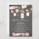 Invitation baby shower de bocal en damier moderne et branché avec une branche d'arbre aux jolis tons de fleurs florales roses et des bocaux de mason populaires rustiques suspendus avec "c'est une fille" sur l'un. Idéal pour baby shower contemporain en bocal de mason invitation pour une douche bébé, baby shower garçon ou baby shower neutre. Visitez notre boutique pour voir notre belle sélection d'invitations en pot de mason.