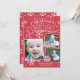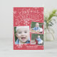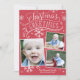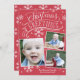 Cette carte de vacances 3 photos présente des oeuvres d'art en lettres et calligraphie sur un arrière - plan rouge festif avec des flocons de neige.