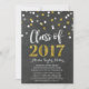 Invitation de la fête de graduation classe de carte photo personnalisée de 2017 en argent, blanc et or confetti motif avec arrière - plan de tableau rustique et texte de style lettré à la main.