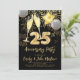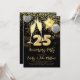 Une invitation de fête d'anniversaire 25 ans moderne, clinquante et glamour étincelante avec un toast de champagne, des ballons, des confettis pailletés or, et des feux d'artifice dorés sur fond noir avec une typographie script moderne stylée. Des ballons dorés en forme de nombre 25. Style voyant, gras et brillant.