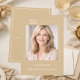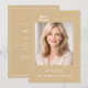 A soft champagne gold colored background, white text. Personalize and add your photo and the details.