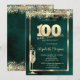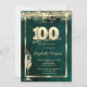 Invitation Champagne Verre Or Confetti Vert 100e anniversaire