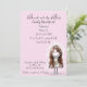 Mignonne figurine avec voile nuptiale, baskets, verre de champagne, cheveux, et robe sur un arrière - plan rose pour le brunch de la mariée mariage. Tout le texte peut être modifié. La couleur Arrière - plan peut être modifiée. La conception inverse est modifiable.