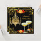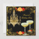 Chandelier de Champagne Vintage Rouge Or Roses Floral Elégante invitation à la fête d'anniversaire. RSVP disponible. Customisez avec vos propres détails. 40e, 50e, 60e, 70e, 80e, 21e, 30e.