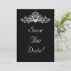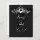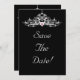 Carte de mariage élégante pour enregistrer la date avec un lustre argenté très détaillé sur fond noir. Ce design est disponible sur plusieurs produits de papeterie pour créer un thème magnifique pour toute votre papeterie de mariage.
