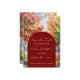 Une peinture à l'aquarelle représentant un paysage automnal avec un chemin de terre sinueux à travers des arbres colorés. Les arbres sur la gauche ont des feuilles rouge foncé et orange, tandis que les arbres sur la droite passent du jaune au vert. Un grand pin bleu se dresse au milieu de la distance. Le chemin est peint dans des tons bruns chauds avec des feuilles orange tombées éparpillées le long. L'arrière-plan présente des collines ondoyantes dans des tons de bleu et de pourpre atténués. Le ciel est peint dans des lavis de bleu clair et de blanc, créant une atmosphère automnale paisible. L'herbe le long du chemin est rendue dans diverses nuances de vert et d'or. La peinture a un style libre et expressif typique des techniques de l'aquarelle, avec des coups de pinceau visibles et des couleurs qui se fondent. La composition est équilibrée avec les arbres créant de fortes lignes diagonales menant du premier plan à l'arrière-plan. La palette de couleurs globale se compose de rouges