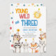Invitation d'anniversaire 3 ans chapeaux de fête d'animaux de zoo forestier colorés
