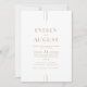 Ce faire-part de mariage à deux côtés de l'Everly Collection présente un design blanc minimaliste avec des lignes art déco fines et un style or chaleureux. L'aménagement centré et l'espacement généreux offrent un aspect poli et moderne. Économisez du papier en incluant un code QR pour votre invité afin d'afficher les détails, RSVP ou les deux.