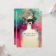 Femme élégante et fantaisiste avec un masque vénitien sophistiqué à plumes de couleurs vives rose, vert, fuchsia, noir et blanc, inspiré de la Comédie de l'Art (Commedia dell'Arte) et du Carnaval de Venise, peinture à l'aquarelle avec feuille d'or et d'argent. Facile à personnaliser avec votre propre texte pour un mariage, une annonce, une réponse à une invitation, un remerciement, une fête de mariage, des fêtes d'anniversaire, des fêtes de fiançailles romantiques, une soirée masquée du Nouvel An, des remises de diplômes, des anniversaires de mariage, des réunions ou presque n'importe quel événement que vous souhaitez !