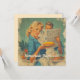 Une joyeuse femme au foyer des années 1950 présente une délicieuse tarte tandis que son mari lit le journal, capturant l'Americana classique du milieu du siècle avec un charme vintage vibrant. Idéal pour les cartes de voeux nostalgiques.
