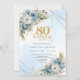 Invitation Charming 80th Birthday Invite Dusty Blue Flowers