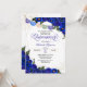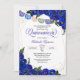 Quinceanera invitation en rose bleu royal avec accents or et bannière de lapin picado papel. Consultez la boutique pour cette invitation avec des filles dans différentes couleurs de cheveux et de teintes de peau.