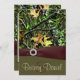 Chasse Camo Wedding Invitations - chaque faire-part de mariage de camo présente un enveloppement imprimé autour d'un ruban marron chocolat avec une boucle ronde diamant pour une touche féminine supplémentaire. Au-dessous du ruban imprimé, la moitié inférieure présente un ombrage brun-vert en terre tressée. Au-dessus du ruban de la moitié supérieure de chaque invitation présente des vitrines et d'élégantes images de camo de chasse d'écorce, feuilles, brindilles et autres débris extérieurs aux couleurs vives de vert, noir, chocolat, gris et bronzé. Le design se rapproche de l'arrière et présente le même design avec une élégante zone de texte couleur crème qui permet aux graphismes d'y jeter un coup d'oeil. Le type de papier est défini sur stock d'invitation de base; cependant, vous pouvez changer le type de papier en lin, feutre ou métal sous le bouton de la personnaliser orange sous la démo invitation. Chaque invitation est accompagnée d'une enveloppe blanche.