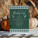 Invitations amis et famille à votre fête de Thanksgiving avec ce chasseur de buffle vert et blanc vérifier l'invitation à dîner. Avec son design rustique et sa typographie stylisée, cette invitation est parfaite pour créer une atmosphère chaleureuse et accueillante pour vos réunions de vacances. Personnalisez-le avec les détails de votre événement pour un invitation festif et mémorable.
