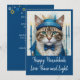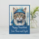 Célébrez la fête des Lumières avec cette invitation unique et fantaisiste pour une fête de Hanoukka mettant en vedette un chat déguisé. Parfait pour les amateurs de chats, ce design allie humour et traditions de vacances, ce qui en fait une façon délicieuse d'envoyer paix, amour et lumière cette saison. Les teintes de sarcelle, de turquoise et de bleu tendance ajoutent une touche moderne à cette célébration intemporelle.