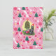 C'est un magnifique, ludique, joyeux design de Noël rose. Il présente une illustration d'un chat noir avec un sapin de Noël et un motif de bonbons, de minuscules arbres verts, des flocons de neige et des étoiles filantes flottant autour.