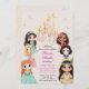 Célébrez le jour spécial de votre petit avec cette invitation de princesse élégante et classique, conçue dans des tons rose blush rêveurs. Avec un château royal, des papillons qui voltigent, des princesses mignonnes et des détails à l'aquarelle, ce design capture la magie d'une véritable invitation de fête de princesse. Personnalisez en modifiant l'invitation numérique ou imprimée avec vos détails d'événement.