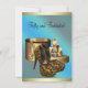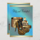 Elégantes invitations de fête d'anniversaire aux femmes léopard bleu turquoise et or. Cette turquoise invitation d'anniversaire léopard bleu et or présente une belle boîte cadeau d'or, une bouteille de parfum, des oreilles et des chaussures de talon haut léopard. Cette invitation de fête d'anniversaire léopard est facilement customisée pour votre fête ou événement en ajoutant vos détails d'événement, le style de police, la taille et la couleur de police et le libellé. Veuillez noter que tous les modèles de cartes et d'invitations que vous trouverez sur Zazzle sont des graphiques imprimés sans bijoux, arcs, surélevés, gaufrés, ou des pièces ou pièces ajoutées.