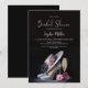 Invitez vos amis et votre famille à assister à votre douche de mariée avec cette invitation élégante représentant des chaussures à talons hauts argentées stylisées et un verre de champagne. Vous pouvez ajouter facilement tous les détails nécessaires au texte personnalisable. Choisissez parmi différents types de papier et styles de coins pour rendre vos invitations uniques. De plus, vous avez la possibilité de télécharger l'invitation si vous préférez un format numérique.